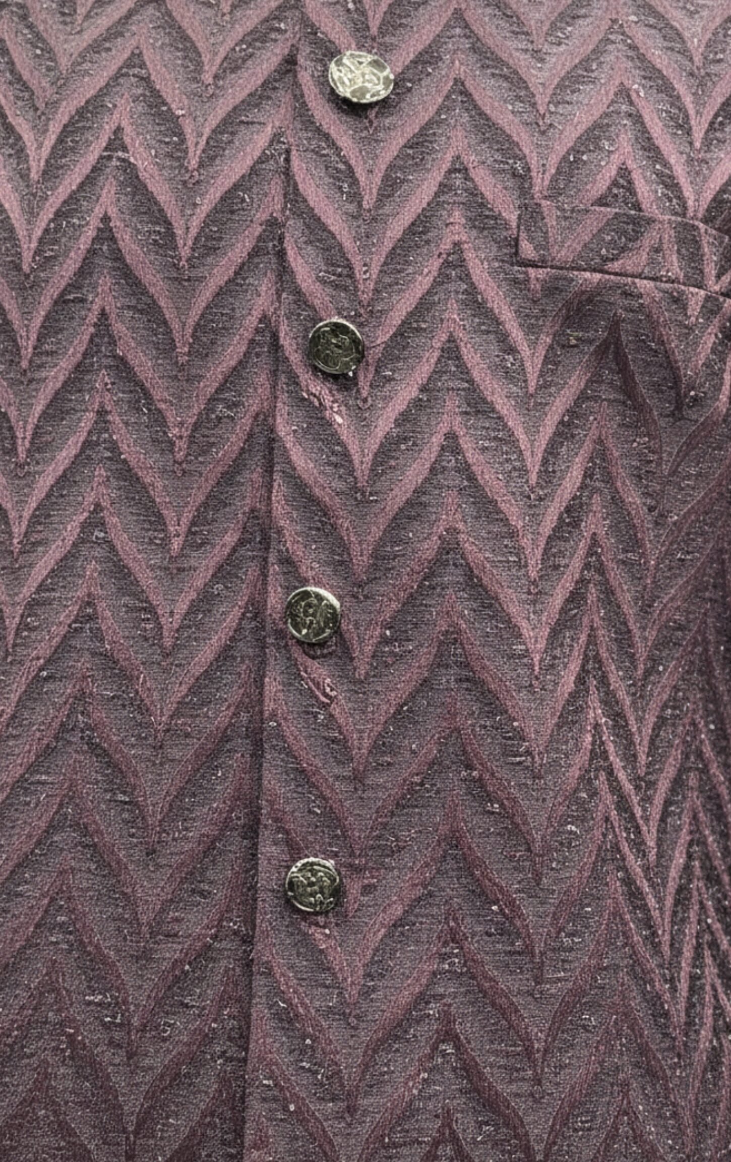 Work: Features a fine Jacquard Weave/Print throughout the garment, showcasing a striking Chevron (V-pattern) design that offers a dynamic and contemporary aesthetic.