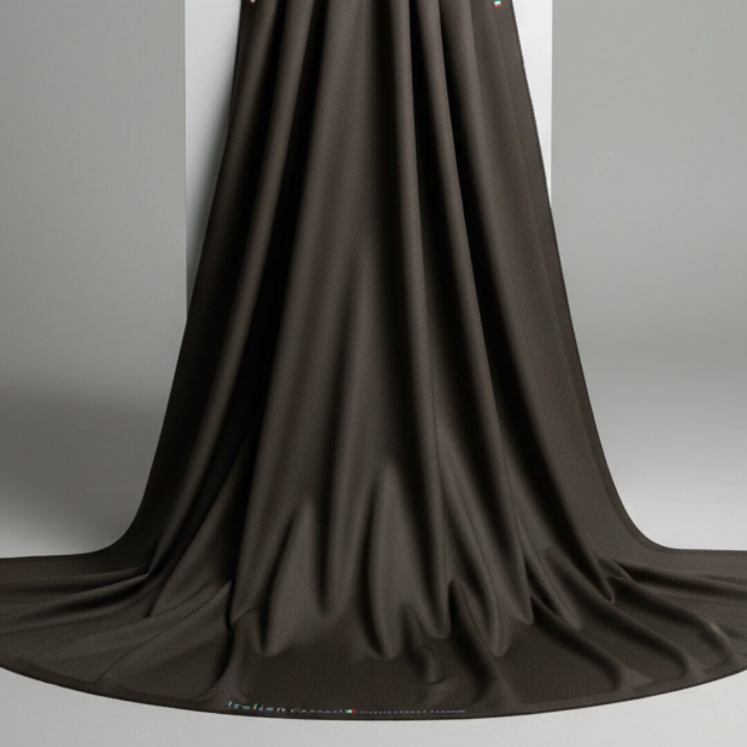 Rich, Deep Colour: Presented in a sophisticated dark shade, likely a deep charcoal or a very dark brown, this fabric offers a versatile base for a variety of formal and professional looks. The rich color exudes a sense of authority and timeless elegance.