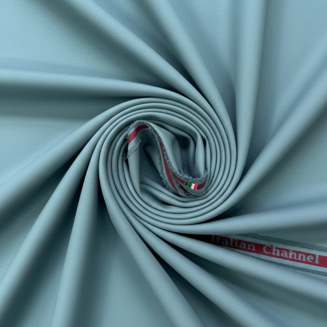 Introduction: Elevate your wardrobe with this exquisite light blue fabric from the renowned ‘Italian Channel’ brand. This piece is a perfect blend of classic elegance and modern style, designed for those who appreciate high-quality materials for custom tailoring.