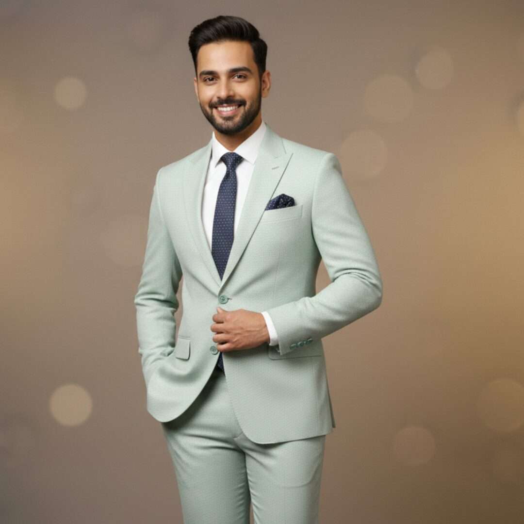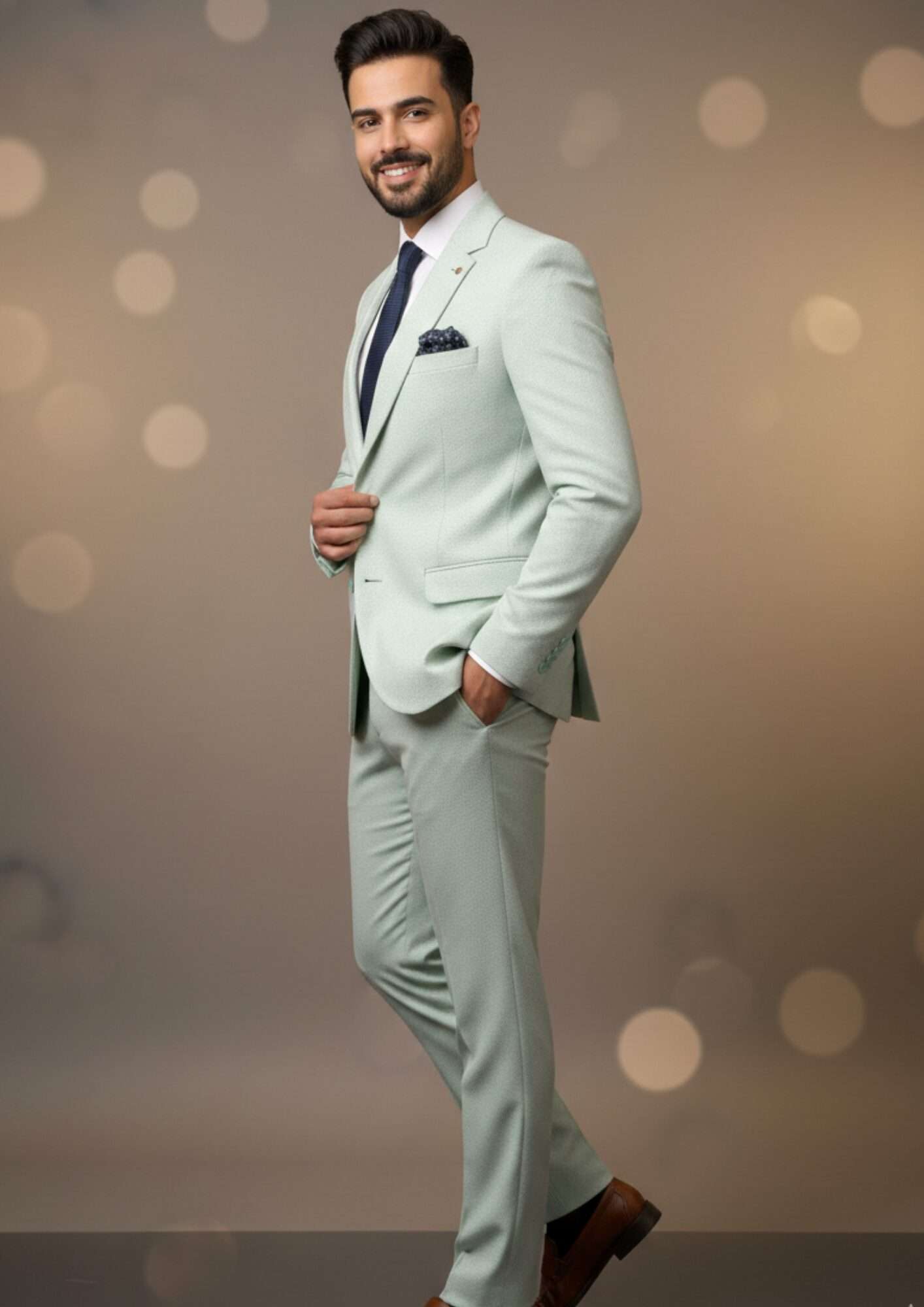 Is elegant Mint Green Suit ke saath apne wardrobe ko ek fresh aur modern update dein. Ye suit khas un logo ke liye design kiya gaya hai jo classic formal wear mein thoda unique aur stylish dikhna chahte hain. Iska subtle textured pattern aur refreshing color ise har mausam aur har occasion ke liye ek behtareen choice banata hai.