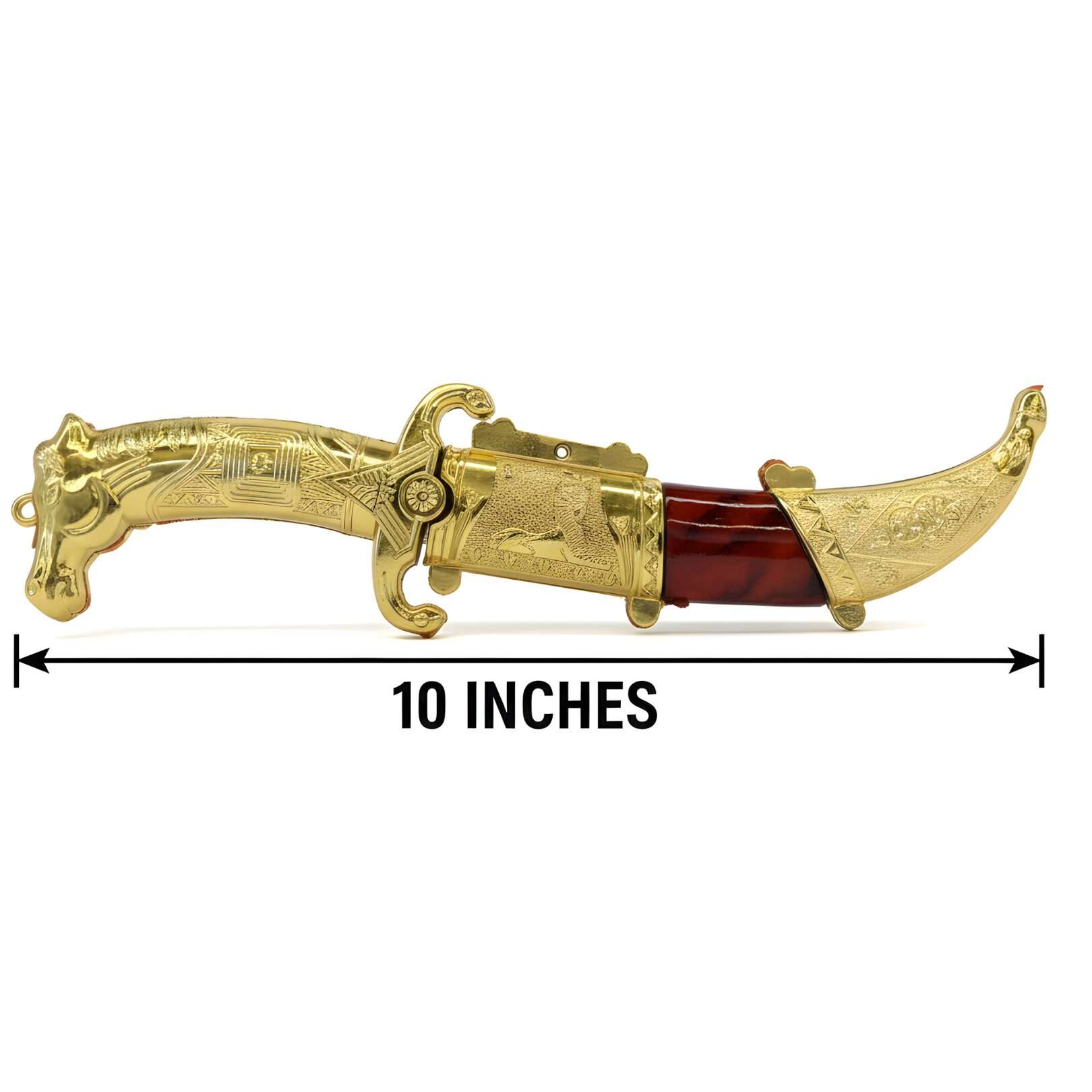 Size aur Display: Yeh khanjar lagbhag 10 se 11 inches lambe hain. Inke saath ek transparent acrylic stand bhi aata hai taaki aap inhe asani se display kar sakein.