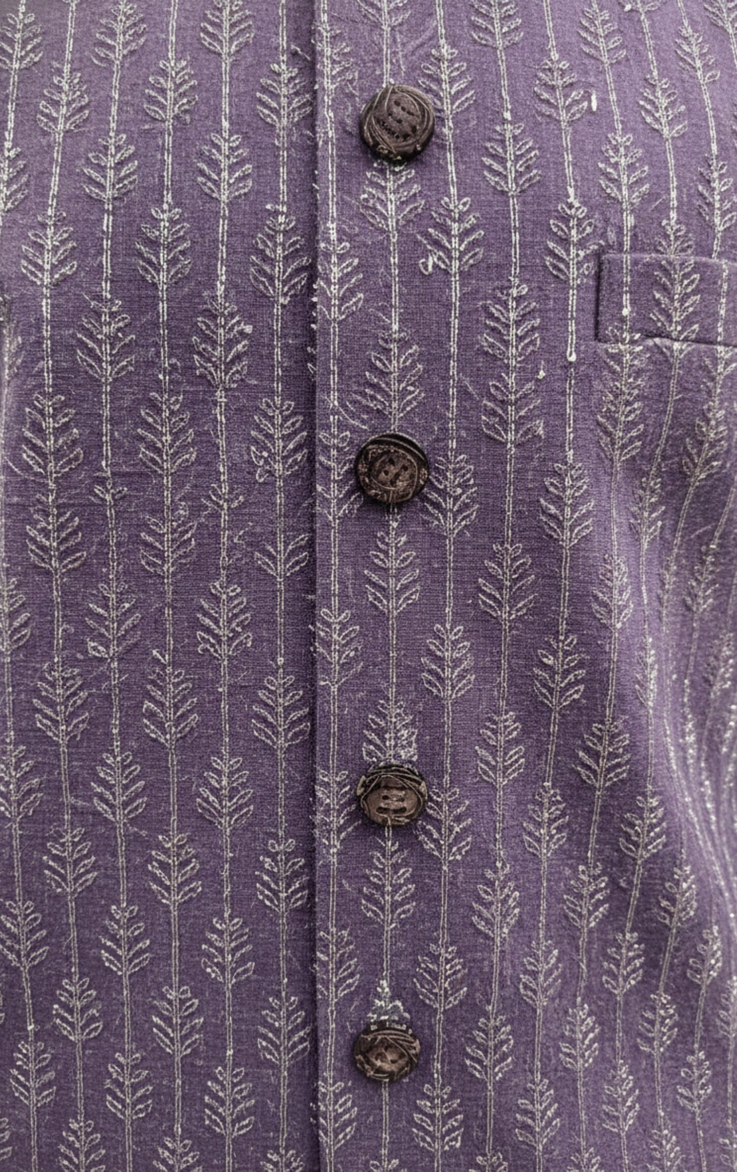 This striking Indo-Western Sherwani style outfit is a unique fusion of premium Korean Fabric and subtle thread embroidery. Its unconventional purple color and textured pattern make it a bold and trendy choice for formal celebrations.